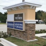 Monument signs are typically lower profile free standing identity products with no exposed structural supports. These custom exterior signs can be fabricated to compliment existing architectural elements that exist on the property or as unique signature elements designed to catch the public eye. Whether simple metal letters and logos on a clean background lit externally or an internally illuminated custom sign designed to provide building identification or entrance to your development we have a design that will work for you.